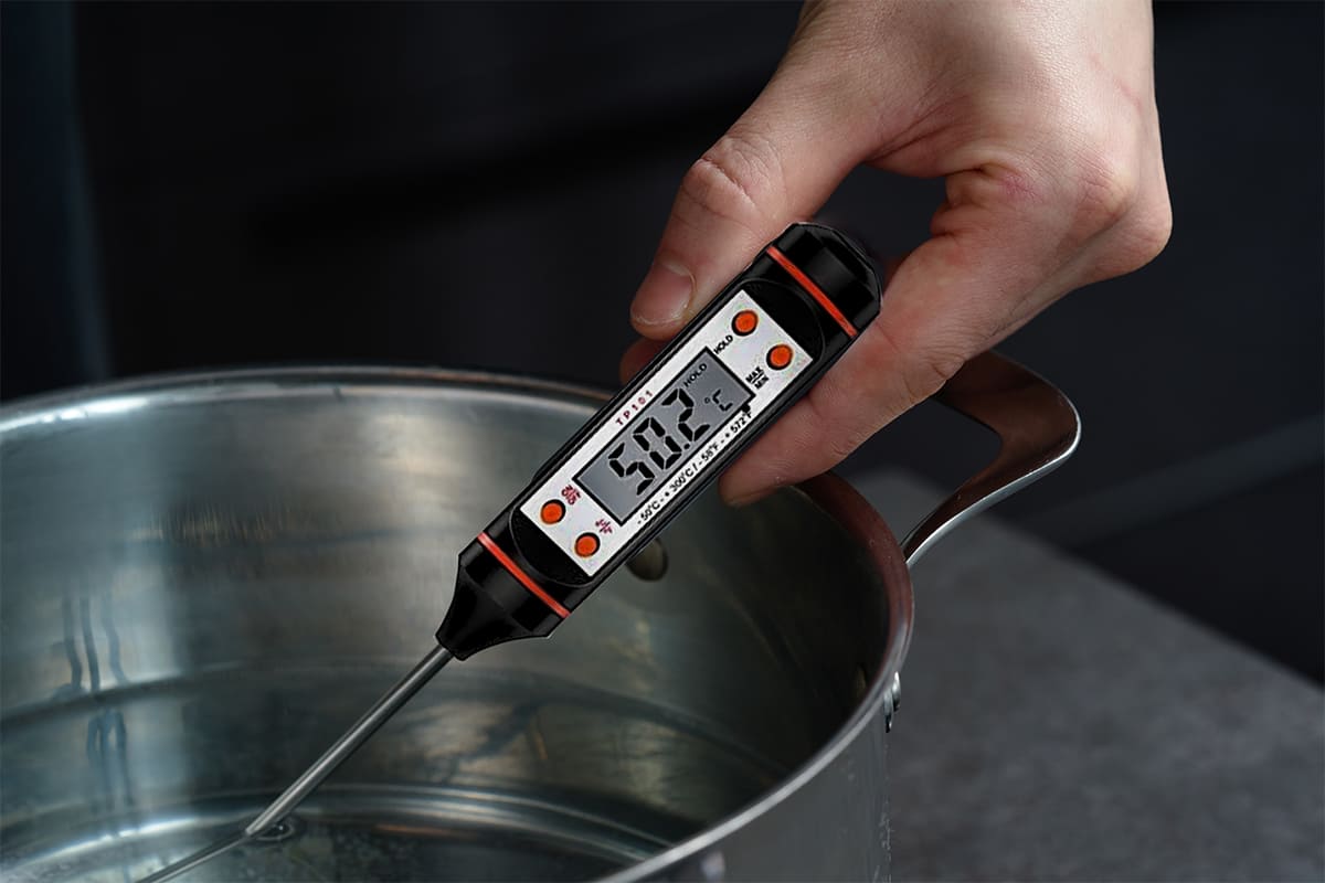プライムリブを湯煎で温める際、50℃の温度をキープするために使用したり、お肉の中心温度を測るためにお使いください。