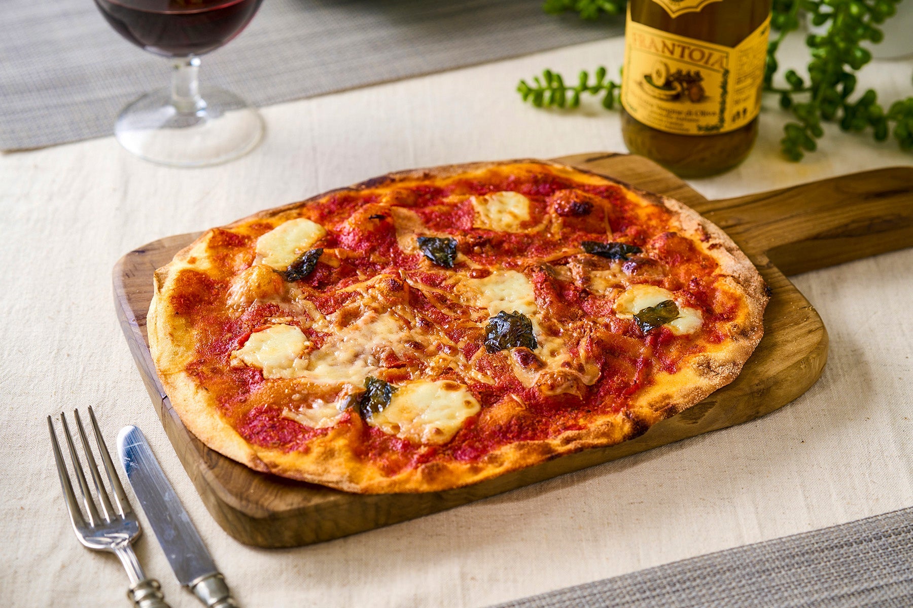 イタリア産の水牛モッツァレラチーズとグラナパダーノチーズを贅沢に使用したピッツァです。さわやかな酸味が特徴のセミドライトマトで作ったソースがアクセントになっています。