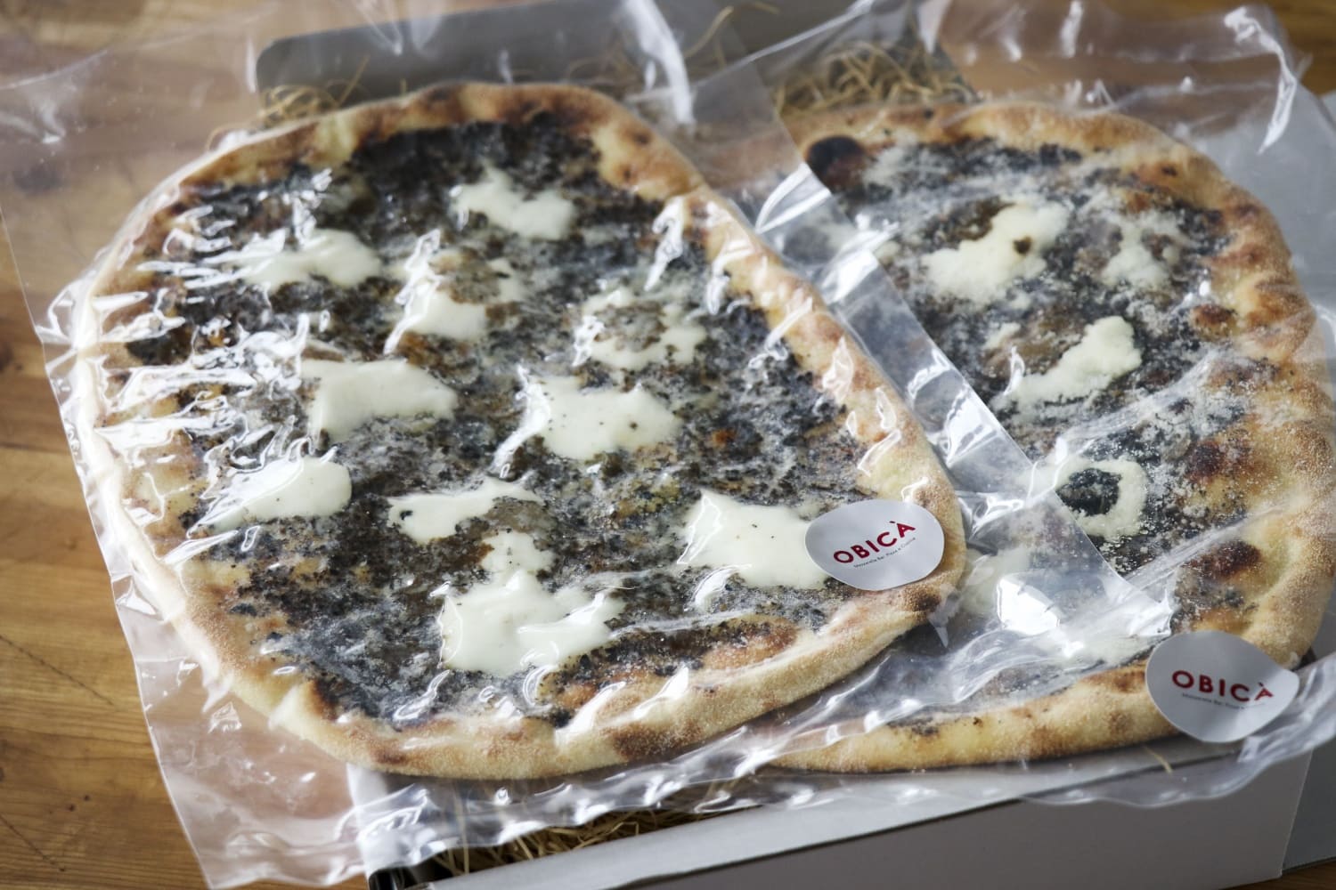 OBICA オンラインショップ人気No.1の商品です。濃厚なマッシュルームペーストに、水牛モッツァレラチーズを乗せ、香り高いウンブリア産トリュフをトッピングした贅沢なピッツァです。